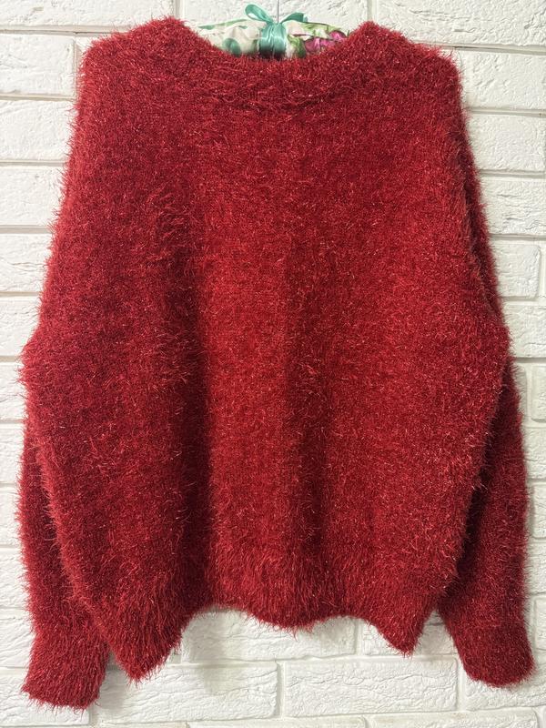 Яскравий светр з люрексовою ниткою і вʼязкою травка, бренду H&M в ідеальному стані 👍🏻 Рукави внизу на ризинці Светр дуууууже теплий Розмір S ПОГ -54 Довжина - 61 Спинка -48 Рукав -57