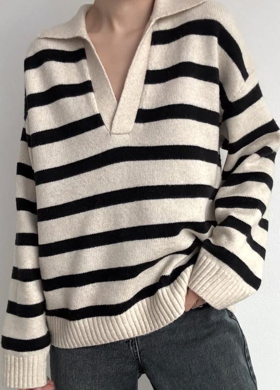 Бежевий светр у смужку 50% акрил, 38% поліестер, 12% вовна Стан ідеальний Розмір Л Півобхват грудей - 68 см Довжина рукава від горловини -79 см Довжина - 67 см