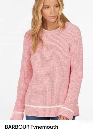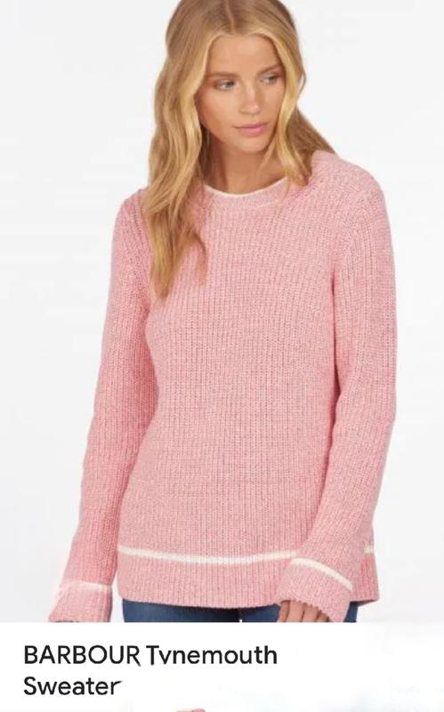 Свитер Barbour вязаный из легкого хлопка меланжем в двух цветах:розового и белом. Он дополнен белыми полосками на вырезе горловины, по подолу и манжетах.В отличном состоянии.Очень приятный и мягкий на ощупь. Не рихлий На высокий рост. Состав:100% хлопок плечи 39 см п/о груди 45 см ширина по низу 51 см длина 66 см длина рукава 65 см на последнем фото на манжете- особенность вязки, а не дефект