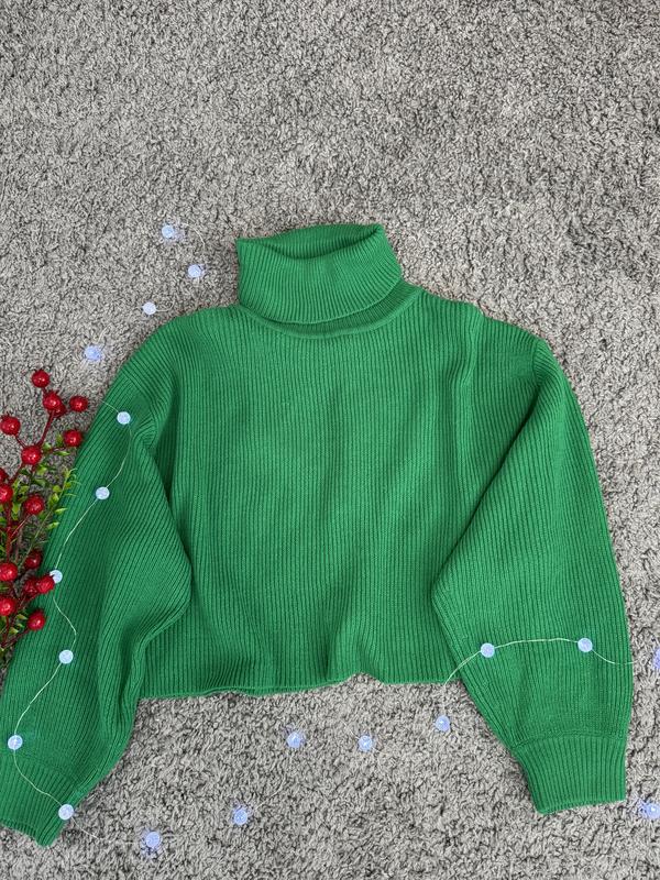 Стильний укорочений гольф насиченого зеленого кольору з м’якої еластичної в’язки. 💚