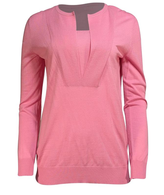 Akris розовый шерстяной свечетер,новой,без бумажных бирок Замеры:39см плечи в спокойном состоянии,рукав от плеча 60см, пог 53см,длина 68см, Комплект 2ка есть еще майка топ которая идет в комплекте, можна приобрести отдельно за 1200