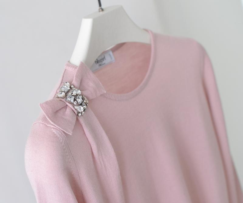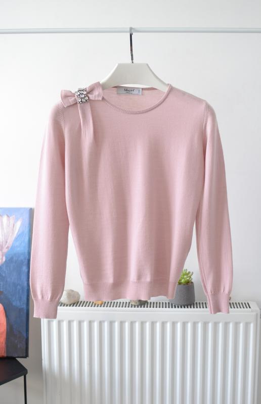 Розовый шерстяной свитер со стразами и бантиком на плече Blugirl размер 34/XS состояние идеальное состав на фото
