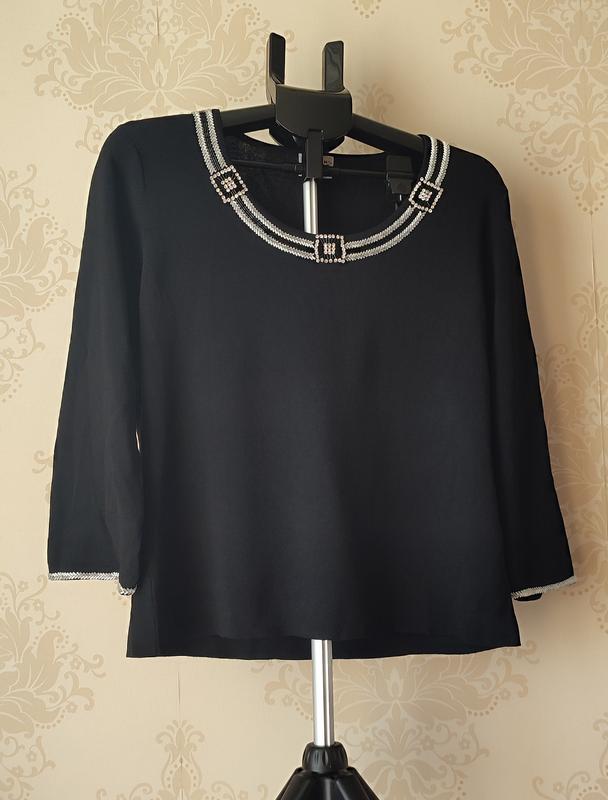 бренд roman, камінчики схожі сваровмкі блищать сильно , стеклярус розшитльяк ручна робота.. стан без дефектів відмінний. розмір бірка вказано M-L, заміри- напівобхват грудей ширина 54, талія 50, низ 56, рукав 49 довж від плеча 58. склад 65%віскоза і нейлон,тягнеться добре. речі не перу і не прасую, можливий запах обробки секонду який зникне при першому ж пранні.