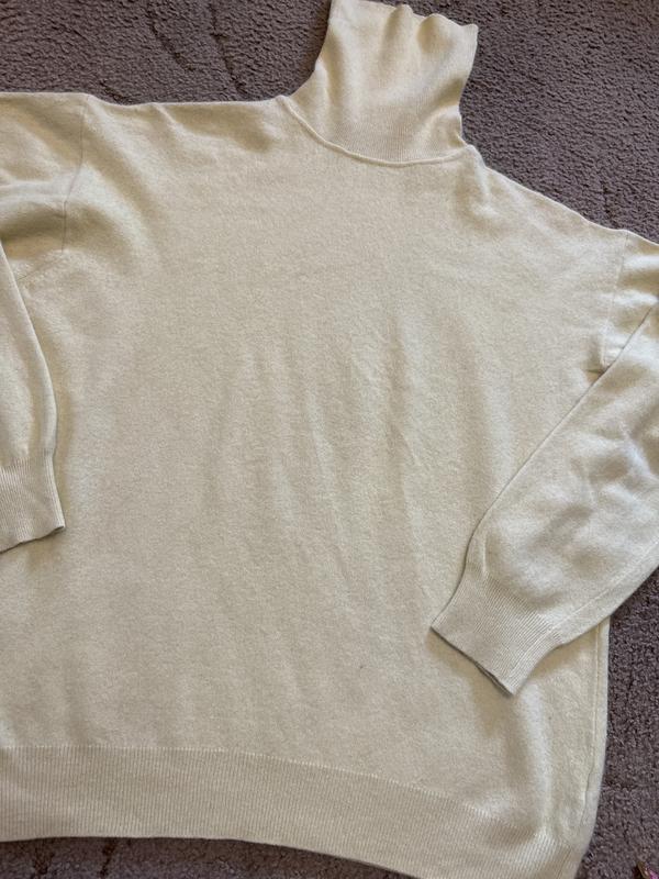 В идеале. Очень обьемный. Лимонный цвет Длина от плеча 66, длина рукава от горла 77, пог 61