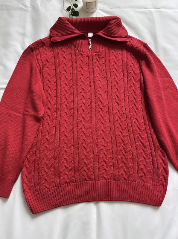 Червоний вʼязаний светр під горло, трендовий замочок, хороша якість, стан ідеальний. Підійде на розмір M/L, пог-54, тягнеться до 57, довжина-67 см.