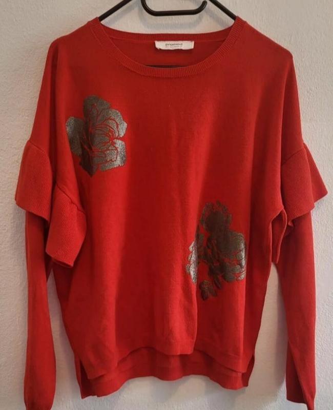 Трикотажная кофточка красного цвета с напылением цветов роз Размер L Длина 60см- 63 см Пол.гр 56см- 60 см