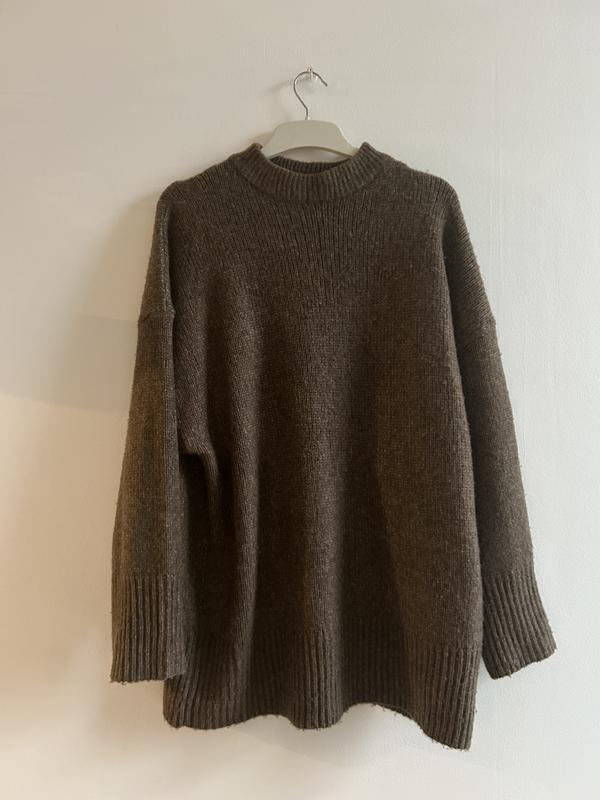 Свитер оверсайз,тёплый,удлинённая модель.отлично подходит с обувью Ugg и более узкий силуэт.можно носить с ремешком,.идеальная модель.в составе есть шерсть,бирку срезала
