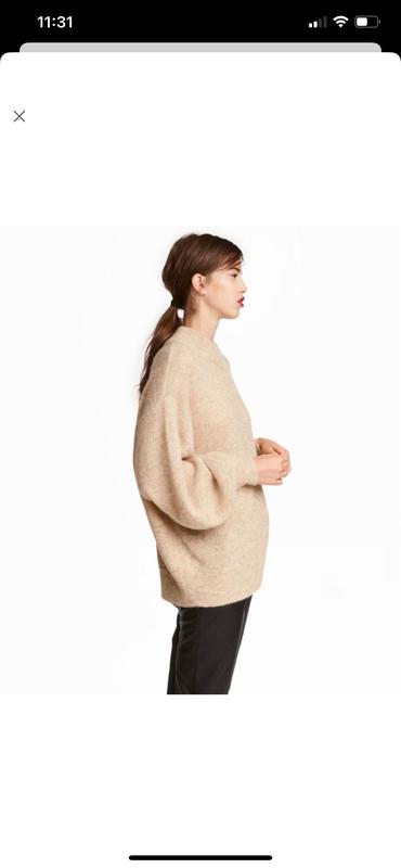 H&M Вартість 500 до 31.12 светр в бежевому кольорі з додаванням нитки люрекс, що надає пряжи легкого мерехтіння Мʼяка горловина, широкі рукави, що звужуються к запʼястку Номінальний розмір м оверсайз У складі 15% мохер , 12% вовни Ідеальний стан відстань між пахвами-66 довжина-65