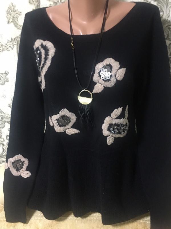 Шикарный вязаный свитер с мелкими стразами пайетками длина 65 грудь 100 рукав 66. Тянется