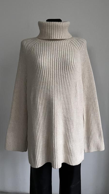 Кремовий светр в рубчик 64% поліестер, 30% акрил, 6% вовна Стан ідеальний Розмір М Півобхват грудей - 54см Плечі - 44 см Довжина рукава - 55 см Довжина -56 см
