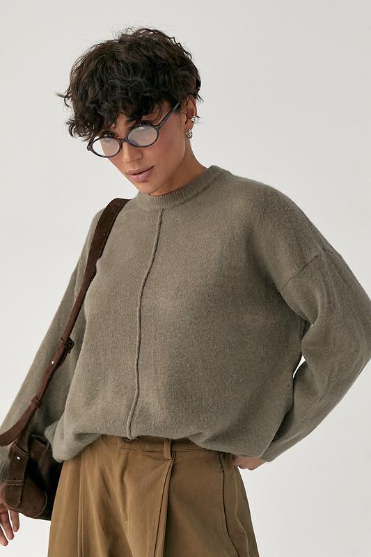 В'язана вільна кофта з декоративним швом , жіночий светр