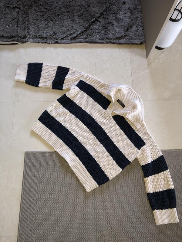В’язаний светр з коміром в смужку бавовняний вязаный хлопковый свитер кофта в полоску с во...