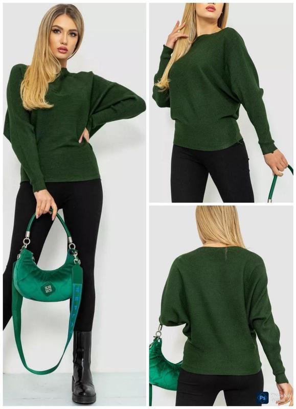 Кофта женская однотонная, цвет хаки, 244R2034 🎨 Хакі 📐 S-M Состав материала: 60% акрил, 25% шерсть, 10% полиамид, 5% эластан