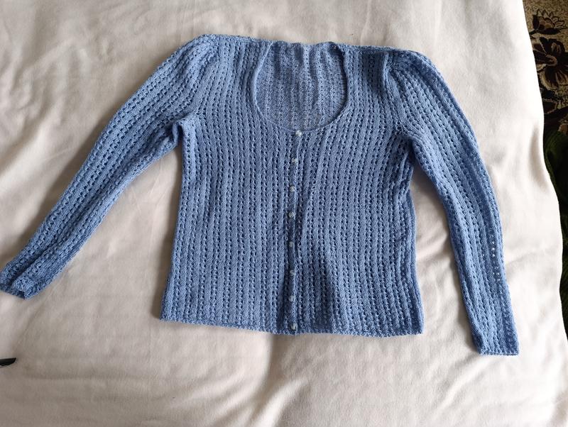 Ажурная легкая кофта ручной работы голубого цвета на пуговицах