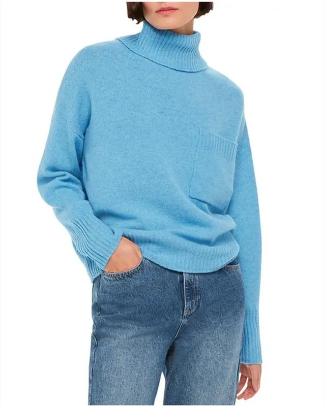 Whistles. 100% вовна Теплый свитер свободного кроя оверсайз от известного бренда. Насыщенный сочный голубой цвет. Размер Л Длина по спинке 60см НОГ 62см Рукав от горловины 74см Состояние отлично