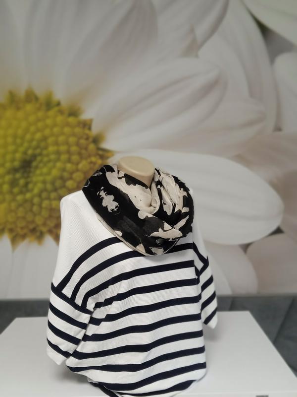 Класична кофточка з коротким рукавом та оригінальним контрастним малюнком у горизонтальну смужку. Легка та зручна. Приємна на дотик. Гладка машинна в'язка. Нитка середньої товщини. Стрейч. Лягає вільно. Фасон-легка летюча миш. Плечі спущені. Акуратний виріз. Стильно виглядає з шарфом в тон у комплекті (шарф може бути замінений, але в кольорі). Є розміри. 54р на пог-58-60 52р на пог-56-58 50р на пог-54-56