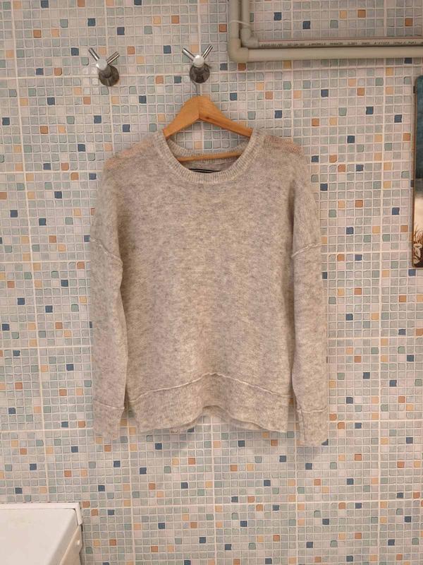 Оригинал, состояние идеальное, без дефектов. Не колючий. Цвет фото искажает, светло серый. ПОГ 58,низ резинка 50, длина рукава от горловины 75,длина 64.