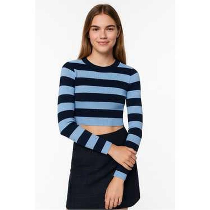Яркий кроп свитерик в полоски бирюзовые и черные Замеры: пог 31, плечи 29, длина 39, рукав 59