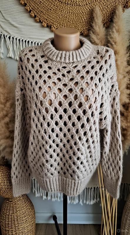 Продается **чаровый мохерный свитер бежевого цвета** - нежный, пушистый и идеален для уютных образов! 😍✨ - **Дизайн**: Ажурная вязка с крупными ромбами и отверстиями - легкий, воздушный, но теплый. Круглый вырез, длинные рукава, удлиненный крой (до бедер) - свободный и женственный силуэт. - **Материал**: Натуральный мохер (пухнаста шерсть ангорской козы) с добавлением шерсти/акрилла - мягкий как облачок, с характерным "пушком" и легким блеском. - **Колир**: Нежный бежевый/кремовый с жемчужным оттенком - универсальный и благородный. - **Размер**: 50 (украинский, подойдет на 48–52, свободный оверсайз). плечи приспущены 60, пог57, пот48, поб60, длина 60, рукв55. - **Стан**: Отличительный! Без колтунов, зацепов или пятен - пушистый и ухоженный, выглядит как новый. Это идеальный свитер для осени/ зимы/весны: накинуть на платье, топ, джинсы или юбку - добавляет романтики и тепла. Ажур + мохер — тренд 2025 года в стиле бохо, cottagecore или скандинавского уюта. Пушистый, как объятия! Не упустите — такой нежный мохерный свитер с ажурной вязкой разлетается мгновенно среди любительниц уюта! Этот красавец ждет новую хозяйку! ❤️