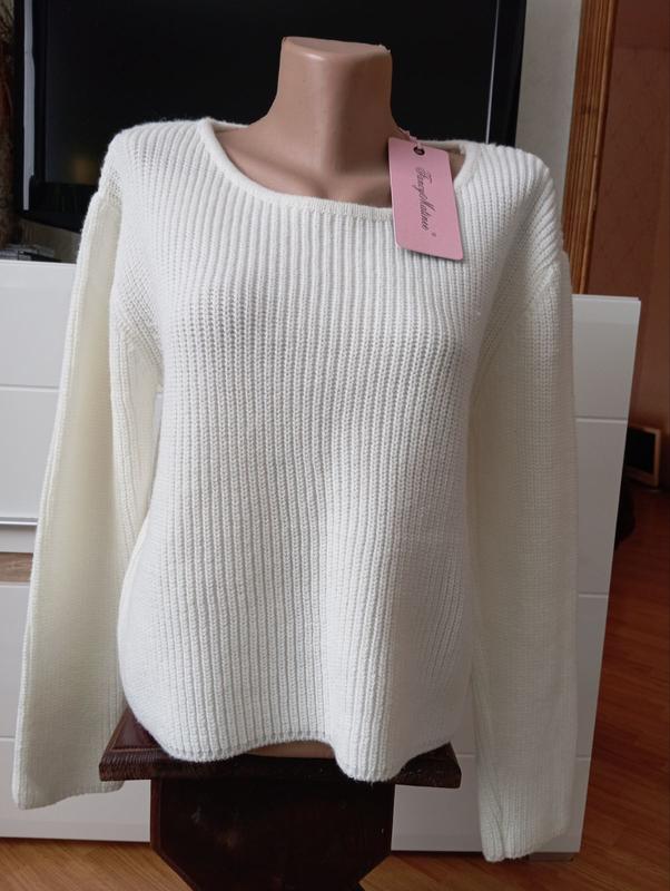 Свитер в вязке белого цвета,размер M-L.