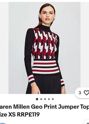 Светр гольф Karen Millen вискоза плотный качественный с интересным геометрическим принтом оригинал размер XS на 34-36 31 плечи 36 под руками 60 рукав 54 длина