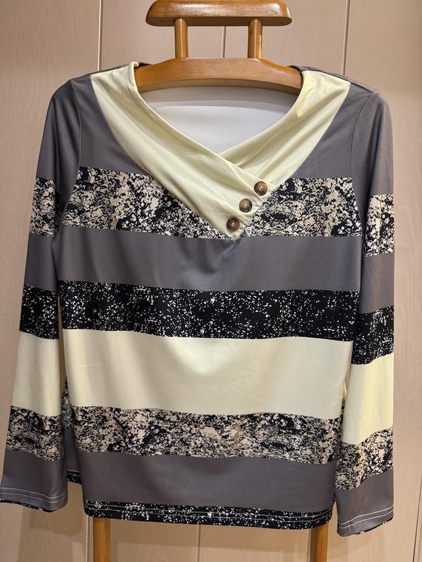 В наявності гарна кофточка. Розмір вказаний L, за замірами йде на 12/14. Склад: 95% поліестеру та 5% еластану, тканина м'яка та приємна до тіла, добре тягнеться. ПОГ-54 та ще добре тягнеться до 60, довжина-65, плечі — 41, довжина рукава — 61, ширина низу — 57 і ще добре тягнеться.