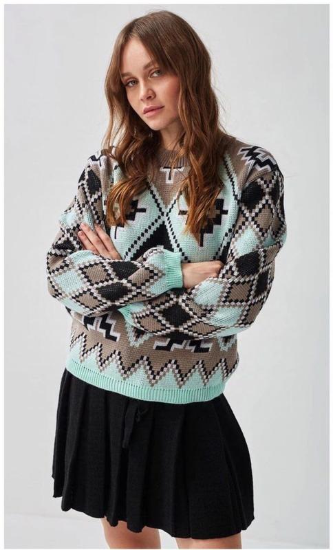 💫Наслаждайся в стильном свитере с геометрическими узорами💫! Его теплая палитра🥰, сочетающий глубокие оттенки цветов🌟, станет идеальным акцентом для твоих образов. 🌼Мягкая, приятная к телу ткань подарит комфорт👌, а свободный крой подойдет для любого типа фигуры🌸. Смело комбинируй этот свитер с джинсами или кожаными брюками для создания яркого и современного лука.❤️ Теплый вязаный 🧶 свитер в этно-стиле " Бренди" Мод. 1102 🔸 Материал: высококачественная пряжа! 🔸 Идеален для прохладной погоды! 🔸 Страна производитель Украина 💙💛 🔸 Универсальный стиль 🔸 Размер oversize 42-48 🔸 Состав пряжи: 50% шерсть,50% акрил 🔸 Сезон: Зима, Весна, Осень Замеры: Ширина по груди 58см Длина по спинке 58см Длина рукава от горловины 69см В ненатянутом виде.