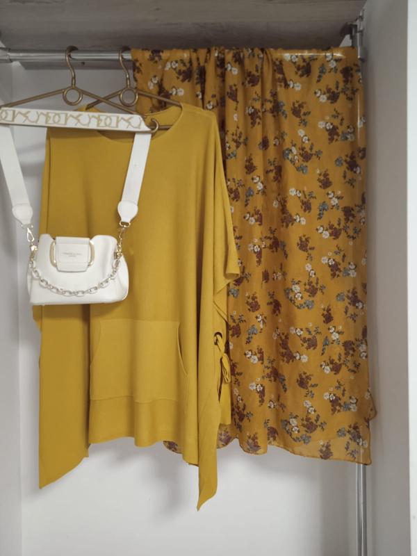 Стильная однотонная кофточка с коротким рукавом насыщенного желтого цвета. Легкая и комфортная. Приятная к телу. Гладкая машинная вязка. Нить средней толщины Тянется с легкостью. Ложится свободно -оверсайз. По бокам разрезы. Прикрашена карманчиками. Аккуратный вырез Можно надевать как самостоятельную вещь, так и поверх блузы или гольфа. Красиво смотрится с шарфом в тон в комплекте (шарф может быть заменен, но в цвете). Размер универсальный.