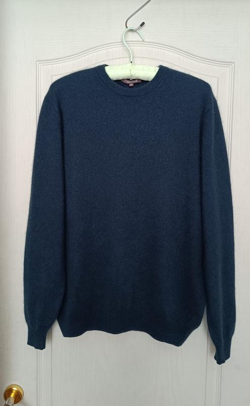 Вязаный свитер свободного кроя из 100% кашемира в сине-зеленом цвете от Cashmere. Круглый вырез горловины, длинные рукава. Ребристая отделка горловины, манжетов рукавов и низа свитера. Свитер мягкий, нежный, пушистый. Теплый, связанный в 2 нити. Размер указан S. Болеемерит. Подойдет где-то на L. Лучше ориентируйтесь на замеры: Ширина плечи - 43,5 см Полуобхват груди - 54 см Ширина по низу (резинка без растяжения) - 39,5 см Длина по середине спинки - 65 см Длина рукава - 63 см, длина плеча - 16 см. Ширина рукава в районе бицепса - 18 см Все замеры сделаны без растяжения, свитер тянется.