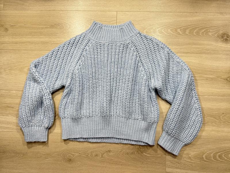 Светр дуже гарного блакитного кольору, трохи овер, по бірці XL, але краще носити на s. Заміри: довжина -54см, ширина - 50см. Рукава теж обʼємні.