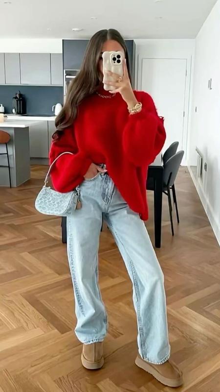 Красный стильный яркий свитер . Мягкий , не колется , в составе есть шесть . Есть кашлатость небольшая, поэтому така цена! Так крутой яркий стильно с разными стилями