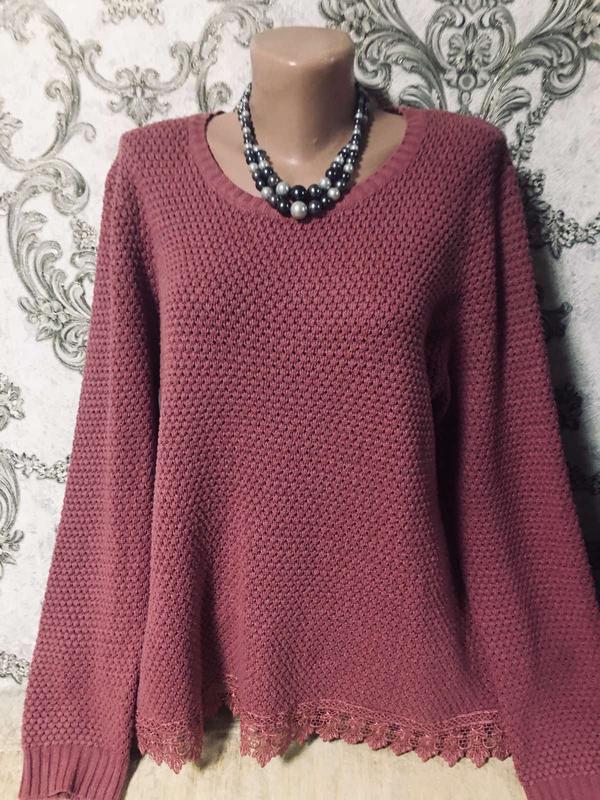 Тёплый вязаный свитер с кружевом 70 грудь 120 рукав 67 бедро 126. Тянется