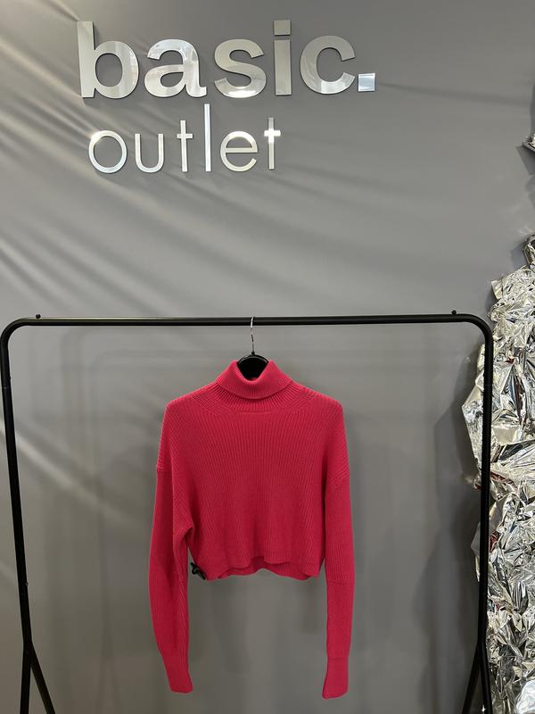 Укорочений трикотажний светр JJXX малинового кольору з високим коміром- гольфом. Виконаний із щільної вʼязки, має вільний крій та довгі рукави з манжетами. Ідеальний для стильних повсякденних образів.