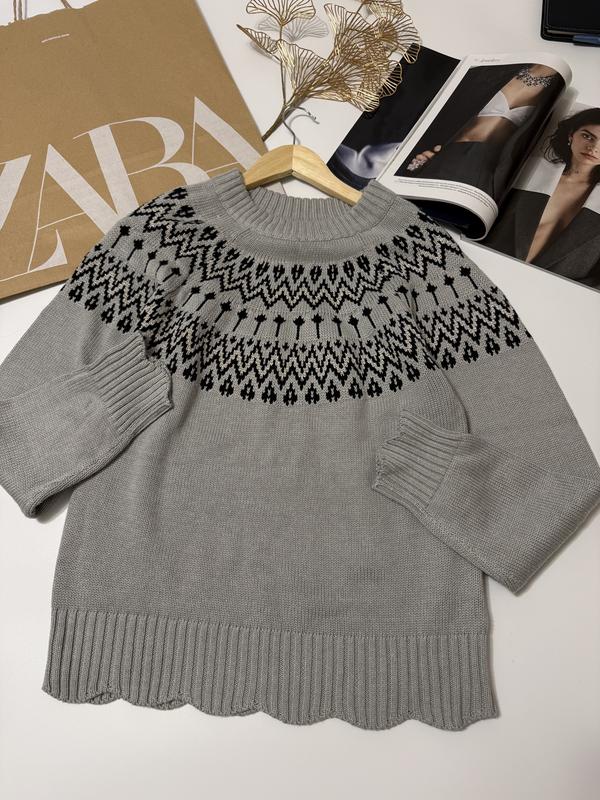 Светр з візерунком Низ резинка виконана хвилею Гарний сірий колір Розмір S Пог 48, пот 46, рукав від горловини 73 Стан як новий