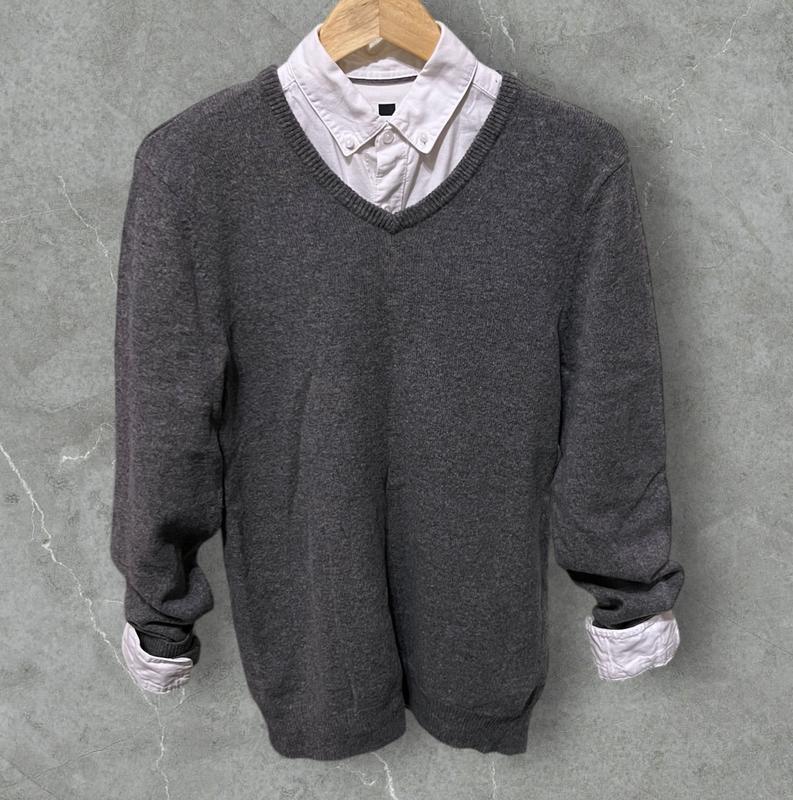 Свитер унисекс, на бирке размер М, красиво сочетается с рубашкой.