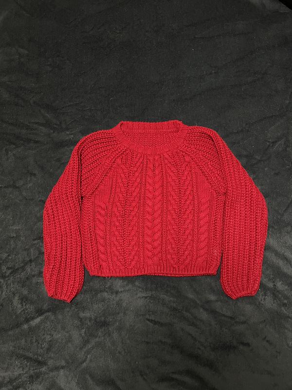 Вʼязаний зимовий светр червоного кольору Вільного крою Заміри: довжина виробу 50 см ПОГ 53 см Довжина рукава від горловини (рукав реглан) 68 см