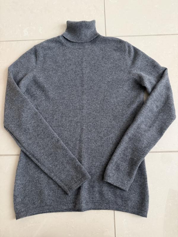 Ніжний кашеміровий гольф, темно сірий меланж Плечі 36 ПОГ 47 ПОТ 43 ПОБ 44 Довжина рукава 64 Довжина 62