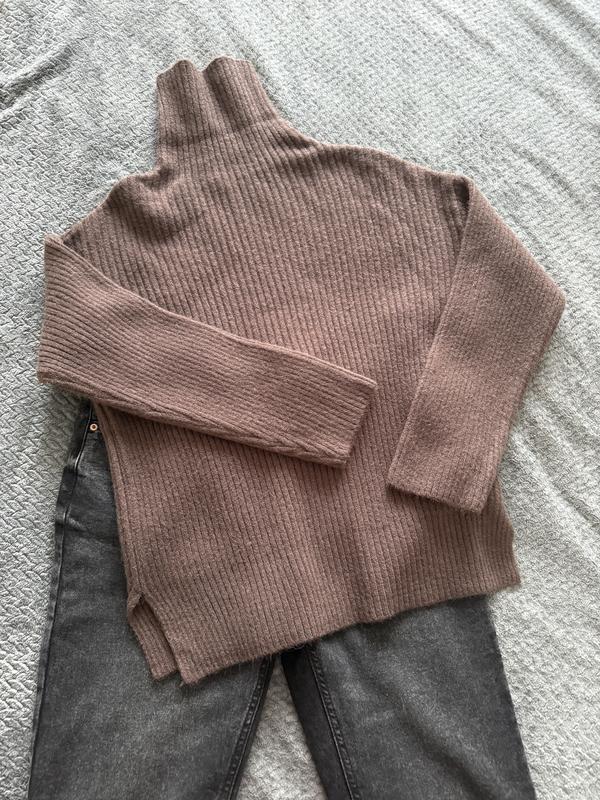 Коричневий теплий светр вʼязання рубрик З боку розрізи Заміри за запитом