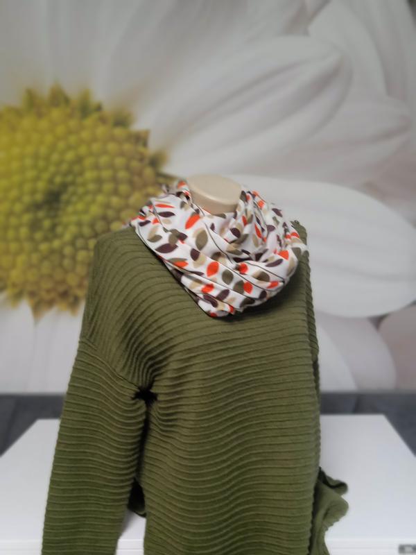 Классическая однотонная кофтонка с длинным рукавом насыщенного цвета хаки. Теплая и удобная. Приятная на ощупь. Фактурная машинная вязка в горизонтальную полоску. Нить средней толщины. Стрейч. Фасон прямой. Ложится по фигуре. По бокам небольшие разрезы. Закрытая шея. По одному плечі прикрашена кнопками. Стильно смотрится с шарфом в тон в комплекте (шарф может быть заменен, но в цвете). Удлиненная. Есть размеры. 48р на пог-52-54 46р на поб-50-52