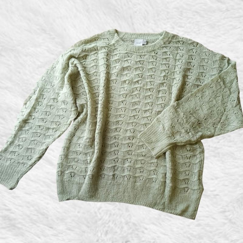 Свитер легкий, нежный, мятного цвета (на сожалению, фото не передает оттенок) Состояние новой вещи, одета только раз! Размер М, но на L тоже подойдет ПОГ - 56 см+ ширина внизу - 45 см длина - 57 см Состав - 52% акрил, 43% полиэстер, 5% шерсть