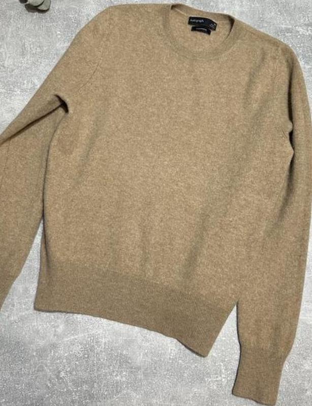 Свитер кашемировый, классический бежевый цвет, состояние идеальный, общая длина 58 см, длина рукава длиной от плеча 62 см, полуобхват груди 49 см.