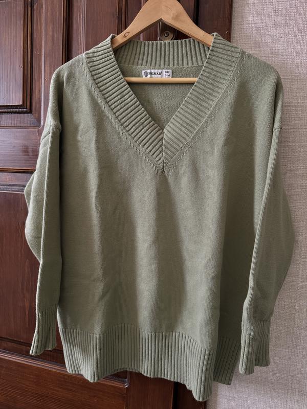 Подовжений светр solmar, стан ідеальний. Розмір s-m ( оверсайз). 100% бавовна Довжина-68 см Колір оливка