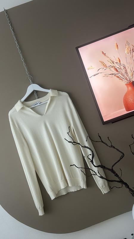 Брендовий светр поло зі 100% шерсті мериноса, колір теплий молочний. Чудово пасує з різним низом та стилем. Довж 66, рукав 65, плечі 44, пог 45, поб бедра манжет 40.