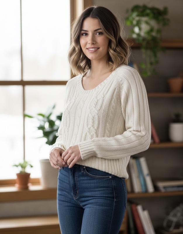 Стильний молочний светр грубої в'язки з косами 🫶 Продам затишний та теплий светр класичного кремового (молочного) кольору. Модель має дуже жіночний вигляд завдяки об’ємним візерункам «коси» та елегантному круглому вирізу. Основні характеристики: • Бренд: 3 Suisses. • Склад: Якісний мікс матеріалів — 30% вовна (laine) для тепла та 70% акрил для м'якості та зносостійкості. Светр приємний до тіла і не "кусається". • Стан: Гарний. • Дизайн: Фактурна в'язка з косами спереду та вертикальними лініями на спинці та рукавах, що візуально видовжують силует. • Крій: Класичний, довжина до пояса, з манжетами на рукавах та по низу виробу. Розмірна сітка (згідно з біркою): • FR/BE: 38/40 • D/A: 36/38 • IT/P: 38/40 • UK: 10/12 • USA: S/S, невелика М, на Ог до 100 см Всі бірки на фото, фото на собі не роблю Для замовлення пишіть в приватні повідомлення 🌸