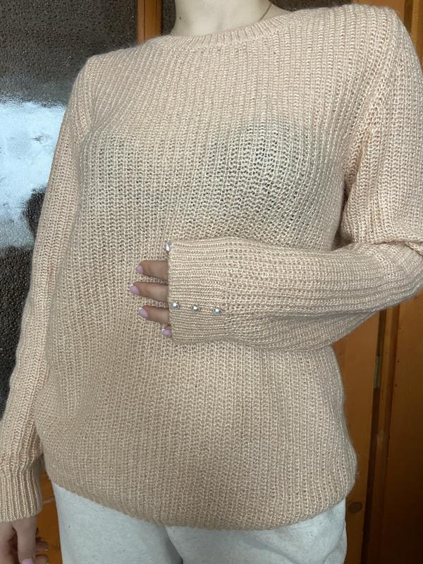 Светр жіночий, приємний на дотик, стильний на манжетах намистини