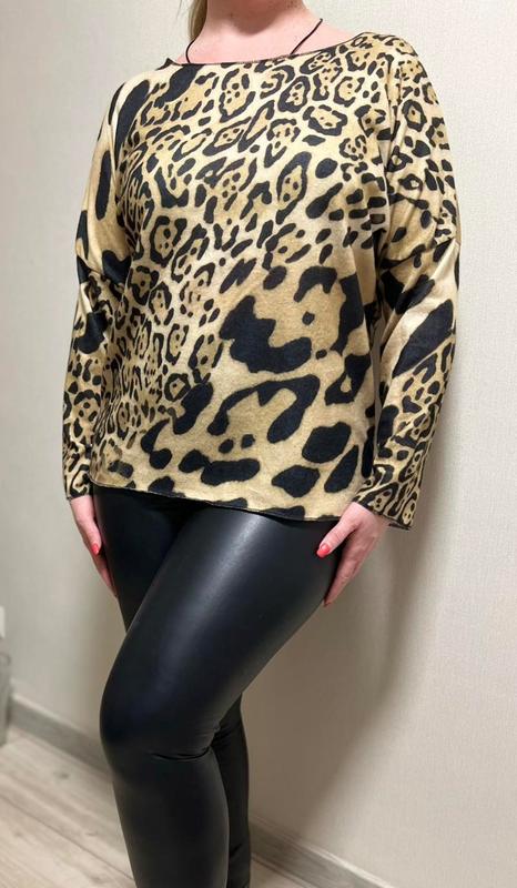 Мягкий свитерик леопардовый принт.Рукав немного "летучая мышь", цвет более с горчичным хаки, а не песочным оттенком, камера не передает цвет. Замеры: от подмышки жил подмышки 134см, длина 72см, низ 120-144 смбо тянется ткань.Приемный к телу новенький свитерик. Есть дополнительные вопросы пишите в личные отправки новая и укр почта оплата на карту, или безопасная оплата