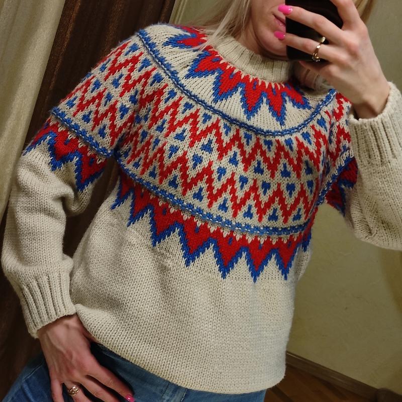 Теплий светр Размер указанного XS Подойдет на XS-S-M ПОГ - 46-47, ПОТ - 50-51, ПОБ - 46-50. Длина 61. 50% полиэстер, 45% акрил, 5% шерсть