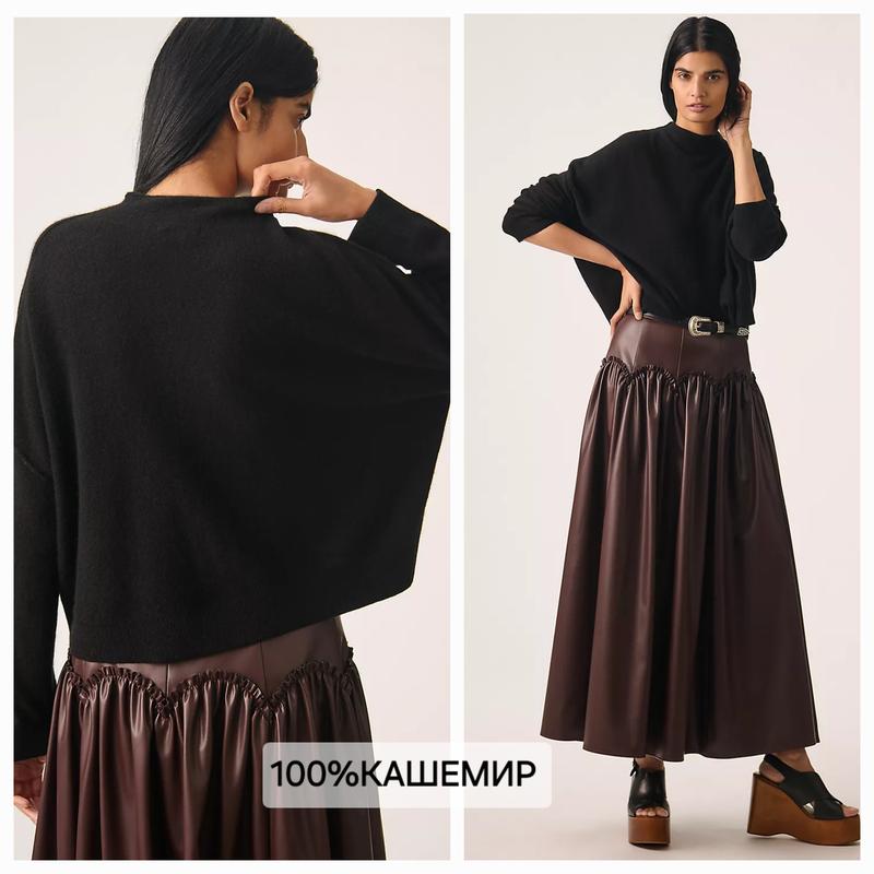 Кашемировый чёрный свитер/нежный мягкий пушистый /свободный расширенный крой/заниженная линия плеча эффект внешних швов/мягкая горловина стойка /от американского брерда Pilcro