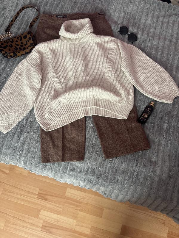 Тканина еластична, м'яка і приємна до тіла, щільна, не колеться. Стан нової речі, без дефектів. Довжина 55 Пог у спокійному стані 68 і дуже добре тягнеться Рукав від горловини 68 По бірці xs, модель оверсайз, буде аж до L