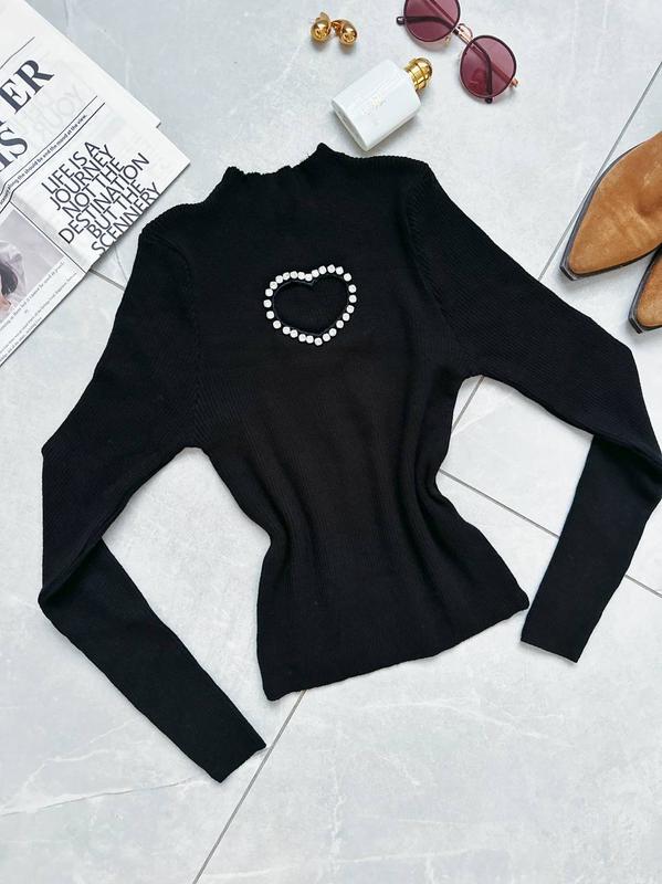 Светр Модель 4810 Размер универсальный( 40-50) Цена750грн Машинная вязка Производитель Турция 🇹🇷 Базовый свитер с оригинальной декорацией в виде сердечка, обработанного качественными стразами. Цвета: розовый, молочный, черный, бордовый, желтый. Замеры: ОГ-45 см Длина-55 см Длина рукава от ворота-70 см Погрешность замеров на трикотажных вещах +-2-3см
